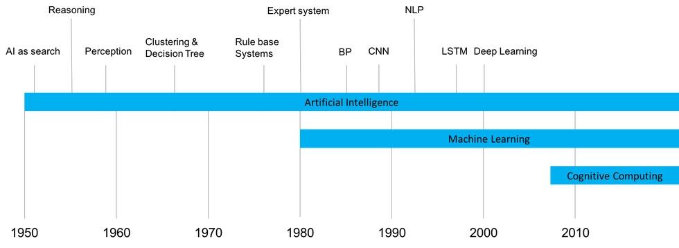 1950 年代初期,人工智能聚焦在所謂的強(qiáng)人工智能,希望機(jī)器可以像人一樣完成任何智力任務(wù)。強(qiáng)人工智能的發(fā)展止步不前,導(dǎo)致了弱人工智能的出現(xiàn),即把人工智能技術(shù)應(yīng)用于更窄領(lǐng)域的問題。1980 年代之前,人工智能的研究一直被這兩種范式分割著,兩營相對。但是,1980 年左右,機(jī)器學(xué)習(xí)開始成為主流,它的目的是讓計(jì)算機(jī)具備學(xué)習(xí)和構(gòu)建模型的能力,從而它們可在特定領(lǐng)域做出預(yù)測等行為。