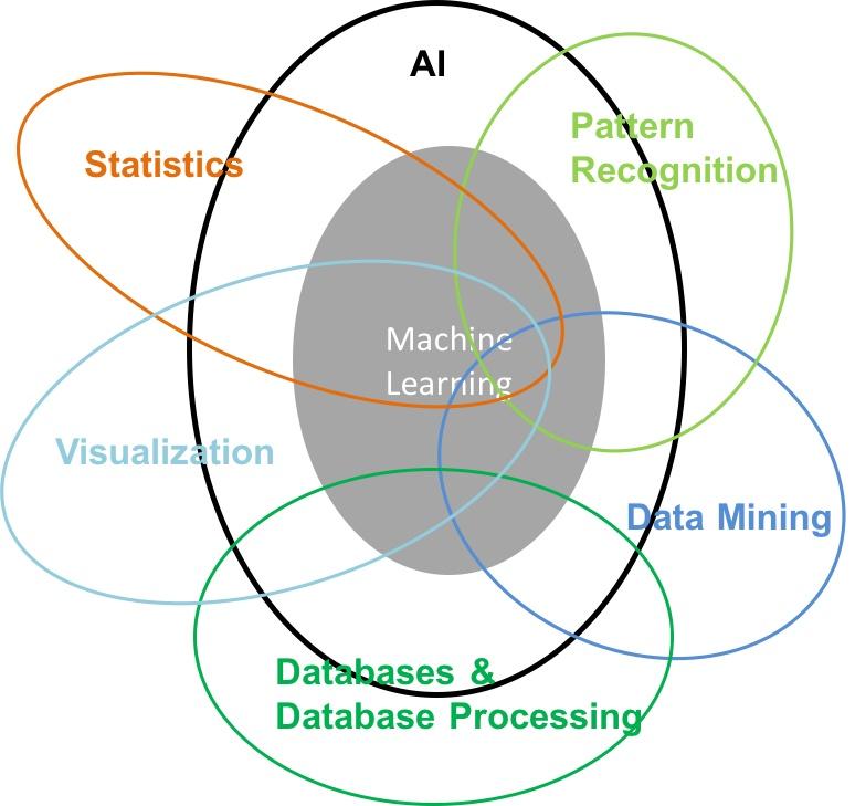 人工智能、機(jī)器學(xué)習(xí)、數(shù)據(jù)挖掘這些非常相關(guān)的術(shù)語或知識我們經(jīng)??吹?,也見到很多關(guān)于三者關(guān)系的文章和討論。一般來說,人工智能是一個(gè)很大的研究領(lǐng)域;機(jī)器學(xué)習(xí)是人工智能的一個(gè)目標(biāo),提供很多算法;而數(shù)據(jù)挖掘是偏向算法應(yīng)用的部分。三者相輔相成,另外也需要其他領(lǐng)域的知識支持。具體關(guān)系請參考下圖。